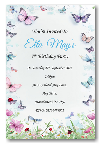 Personalised pink & white butterfly Birthday party invitations REF B114 Any age can be done