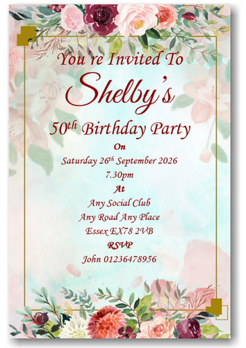 Personalised Beautiful Floral Birthday Party Invitations Ref B118