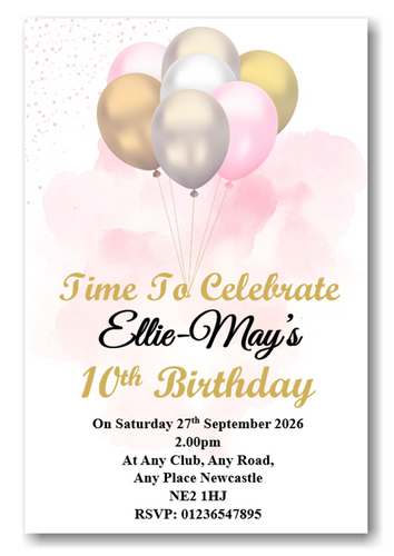 Personalised Classic Balloon Birthday Party Invitations Ref BD105