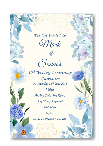 Beautiful Blue Floral Wedding Anniversary Invitations Ref AV81