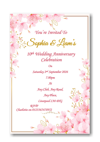 Beautiful Floral Wedding Anniversary Invitations Personalised REF A17