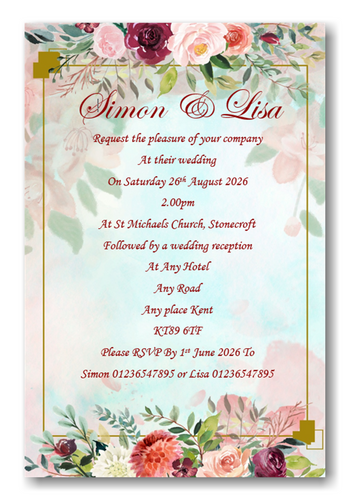 Personalised Beautiful Floral Wedding Day Invitations Ref WD80